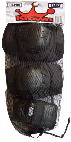 Krown Action Tri-Pack Skateboard Pads Extra Small Krown DECK The Krown Action Tri-pack is designed to take abuse from all types of action sports including skateboarding, bmxing, and inline skating. Includes Knee Pads, Elbow Pads, and Wrist Guards